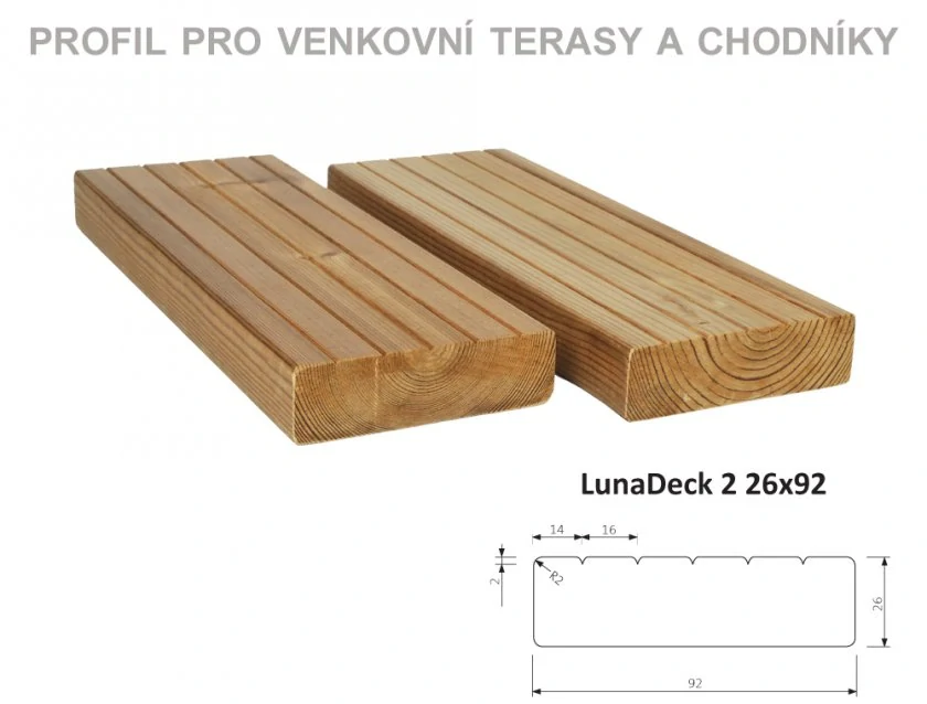 Prkno terasové a bazénové LunaDeck2 26 x 92 x 4200 mm - THERMOWOOD